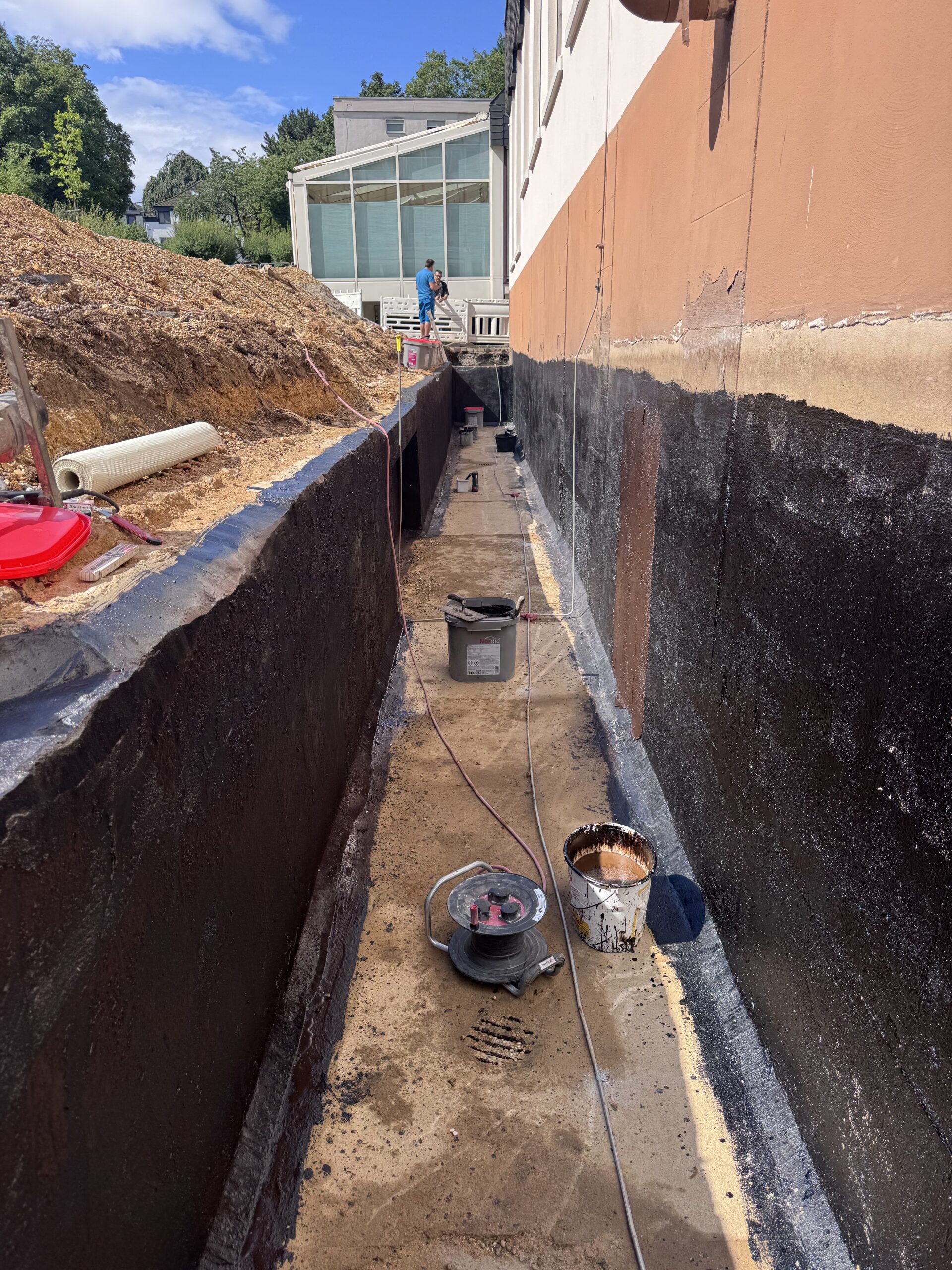 Für ein Klinikgebäude haben wir die Kelleraußenwände fachgerecht abgedichtet, um langfristigen Schutz vor Feuchtigkeit zu gewährleisten.