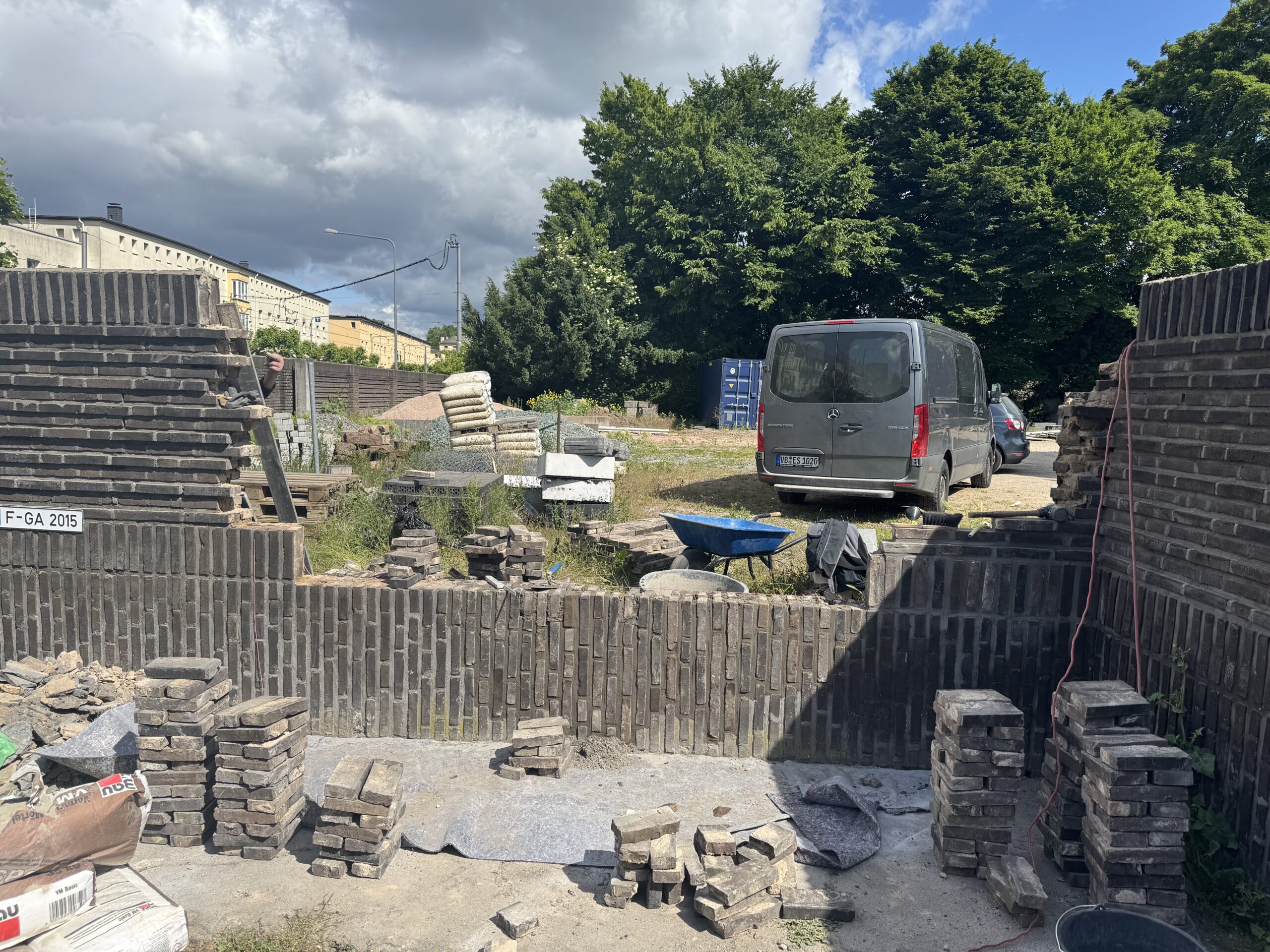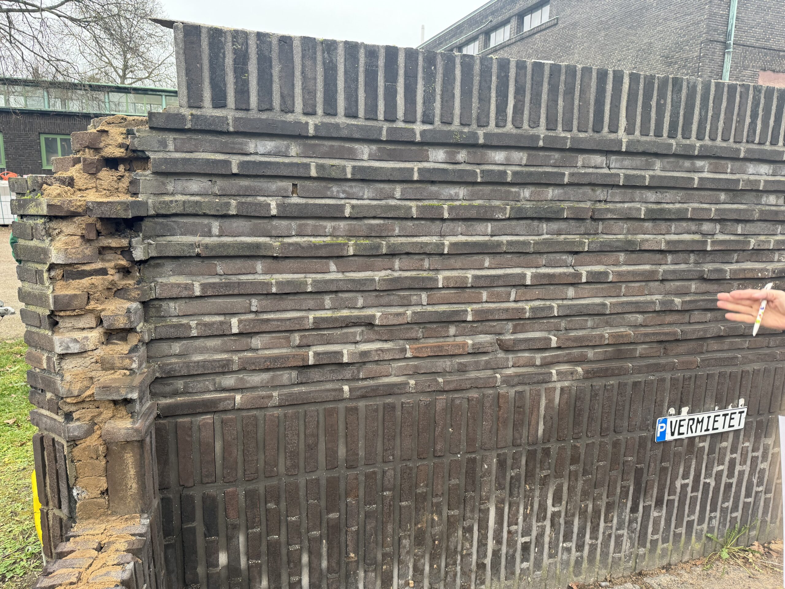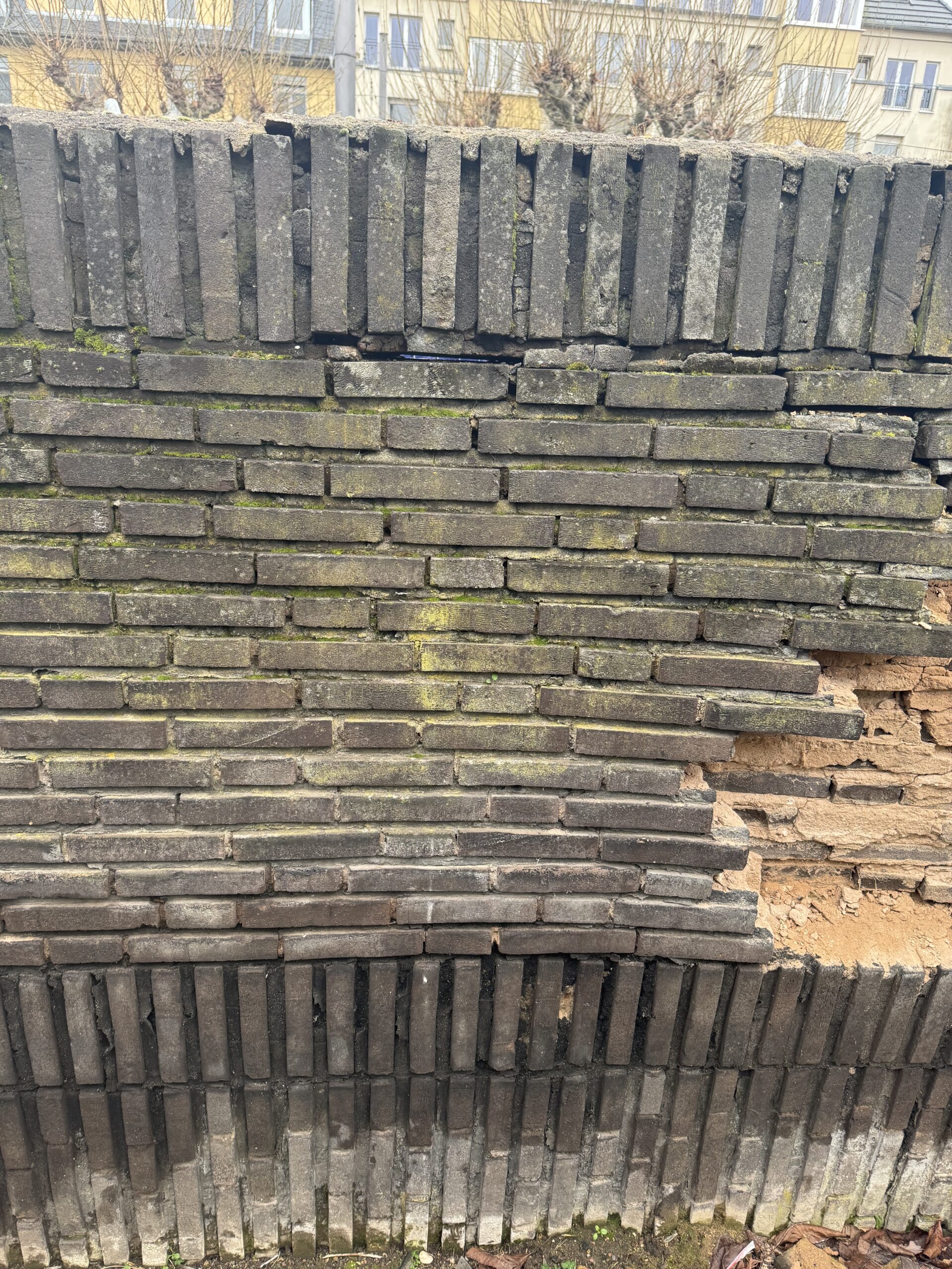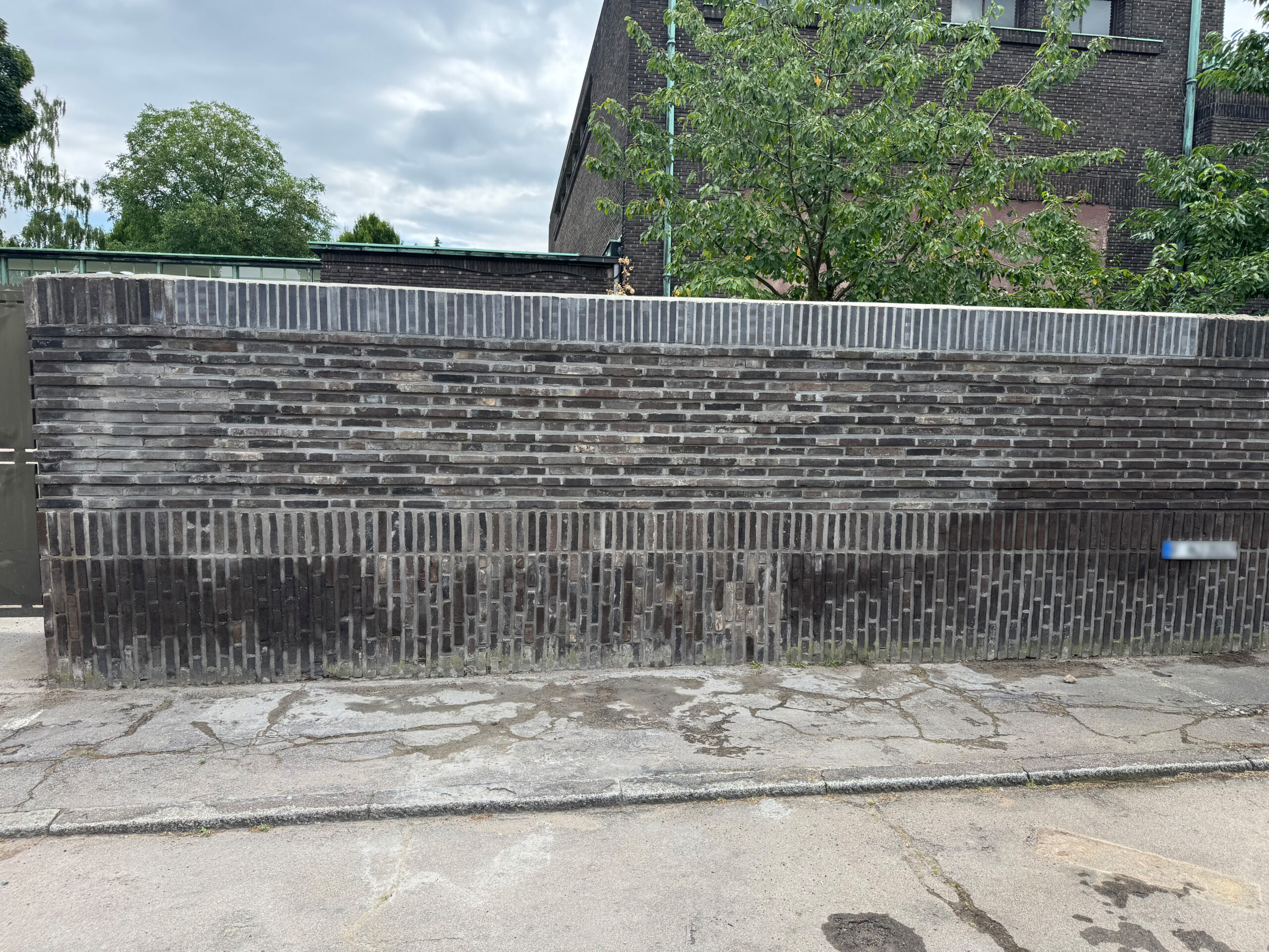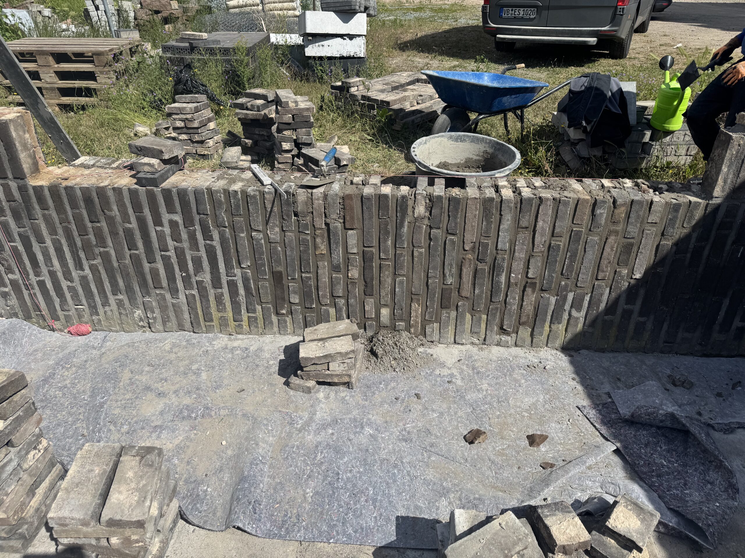 Die beschädigten Mauerbereiche wurden sorgfältig abgebrochen und entsorgt. Anschließend haben wir die Anschlussstellen fachgerecht gereinigt und die erhaltenen Klinkersteine zwischengelagert. Um das historische Erscheinungsbild und den Denkmalschutz zu wahren, wurden die originalen Steine später wieder vermauert und die Mauer so originalgetreu instandgesetzt.